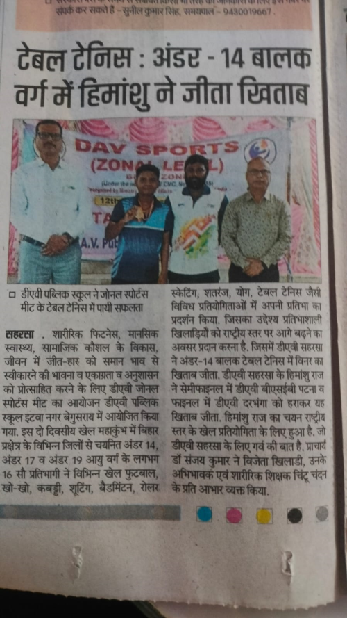 D.A.V. Public School, Saharsa Ward No. 31, Hatiya Gachhi, Sahara, Bihar - 852201 Contact No. - 9155658580, 06478 - 224024 E-Mail ID: davpssaharsa@gmail.com (An English Medium, DAV College Managing Conmmittee, Chitragupta RoadS, New Delhi - 110055)